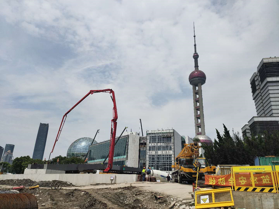 上海陸家嘴鋼箱梁配重項(xiàng)目: 上海陸家嘴鋼箱梁配重鐵砂混凝土泵送中。